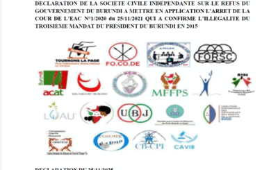 A cet égard, les organisations de la société civile en exil signataires de la présente informent la communauté burundaise et internationale de ce qui suit :